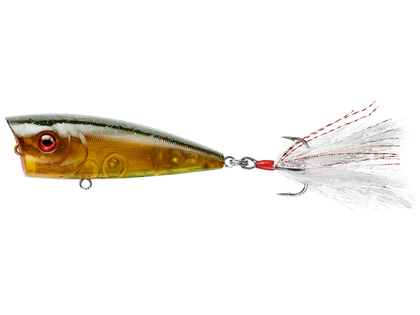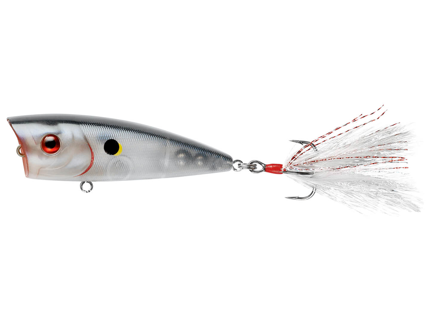 The concave, Easter egg shaped face of the Booyah Boss Pop Popper maximizes the “spit” that sends water flying with every twitch. The depth of this cup/mouth is relatively shallow when compared to other chuggers / poppers, and makes walking the dog and skittering across the surface easy and productive.