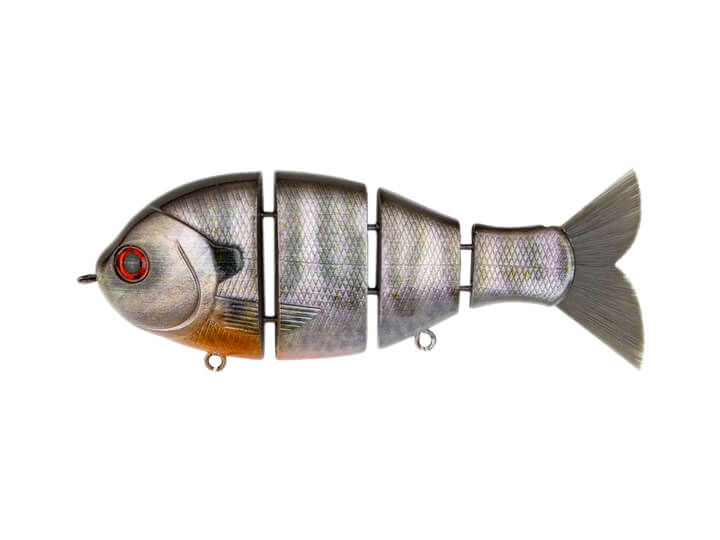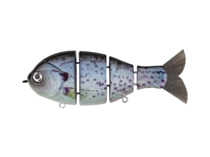 The Bucca Brand Baby Bull Gill works exceptionally well in places where bigger fish feed on panfish, shad, or small bass. It can be a creek, pond, river, or reservoir - If panfish are on the menu, this is the bait to tie on. Giving a smooth and steady wind allows the bait to swim 2-5 feet below the surface as it sways and ungulates freely, creating an 'S' motion as it swims. If you burn the Bull Gill in using a fast retrieve, the swaying swimming motion tightens up, and the bait rises to the surface. Now you're mimicking a distressed baitfish near the surface. No need for specialized swimbait rods with this downsized gem, the Baby Bull Gill works on medium to medium-heavy casting and spinning rods.